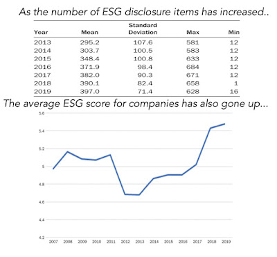 While I am sure that there will be some in the ESG community who will view this as vindication that disclosure is inducing better corporate behavior, the cynic in me sees companies learning to play the ESG game, at least as designed by services, and using the disclosure process to check boxes and up their scores. To me, the parallels to the corporate governance movement from two decades ago are uncanny, where services rushed to estimate corporate governance scores for companies, accountants and rule writers added hundreds of pages of disclosure on corporate governance, and promises were made of a “golden age” for shareholder power. The fact that the corporate governance movement enriched services, consultants and bankers, and left shareholders more powerless than they were before the movement started, holding shares in companies with dual class shares or worse, should act as a warning for ESG disclosure/measurement advocates, but I have a feeling that it will not.